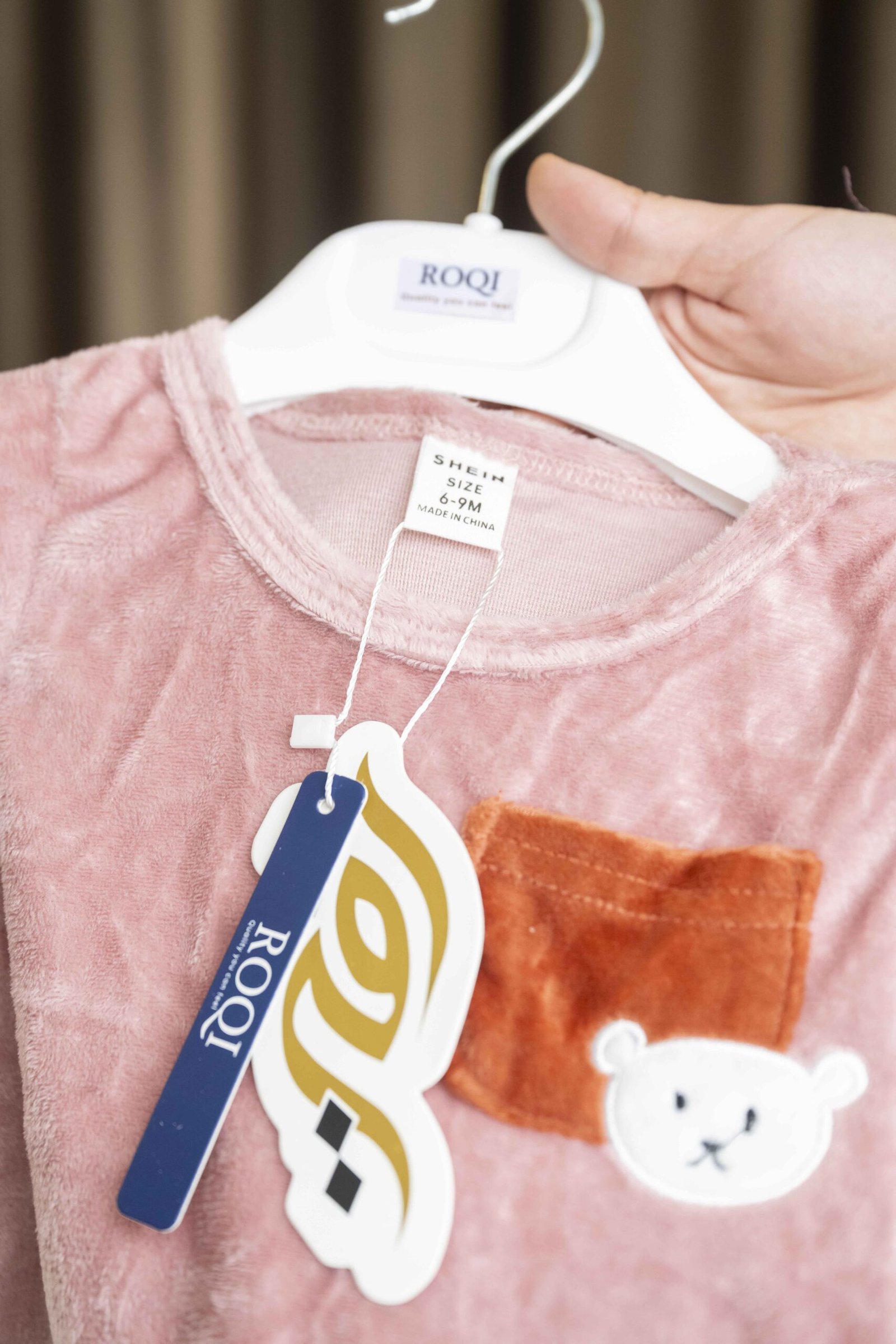 جامب سوت بيبي من Shein بخامة قطيفة خفيفة وناعمة، مريح جدًا على جسم البيبي ومثالي للاستخدام اليومي في البيت.